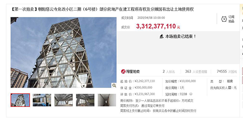 4月8日,在15次競價(jià)之后,引發(fā)超7萬次圍觀,2方報(bào)名的中弘大廈拍賣最終落槌。北京植晟云廈物業(yè)管理有限公司通過競買號(hào)M1691報(bào)價(jià)33.12億元,溢價(jià)10.5億元拍得中弘大廈。 ...