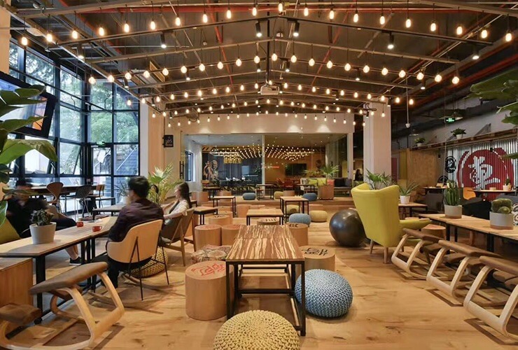 裸心社@東大橋地處北京商務中心區,毗鄰世貿天階。交通方便,從東大橋地鐵站步行只需3分鐘,地段極佳。附近的酒吧街和工人體育場也為工作之余的休閑提供了便利。這家裸心社主打的設計靈感為“清新寧靜”,既有挑高的天花板,吊燈,讓環境敞亮舒適,也有紋理墻紙和巖磚墻面,使空間充滿質感。會客廳占地超200平米,滿眼的綠植總會讓你賓至如歸。