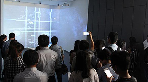 沙盤前聽取項目講解,不時有人提問