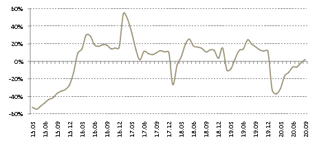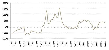 1-9月份,32個二線城市居住用地成交面積為26284萬平方米,同比增長2.5%。二線城市土地交易市場出現積極信號,即年初累計土地成交面積同比增速曲線首次轉正。今年前8月,該指標均處于負區間,不過跌幅逐漸收窄,9月份該指標由負轉正。代表城市包括了武漢、石家莊等,均已經走出了負增長區間,地市回暖有動力。由于二線城市此前地王現象相對偏多,所以后續土地交易市場容易受政策影響。