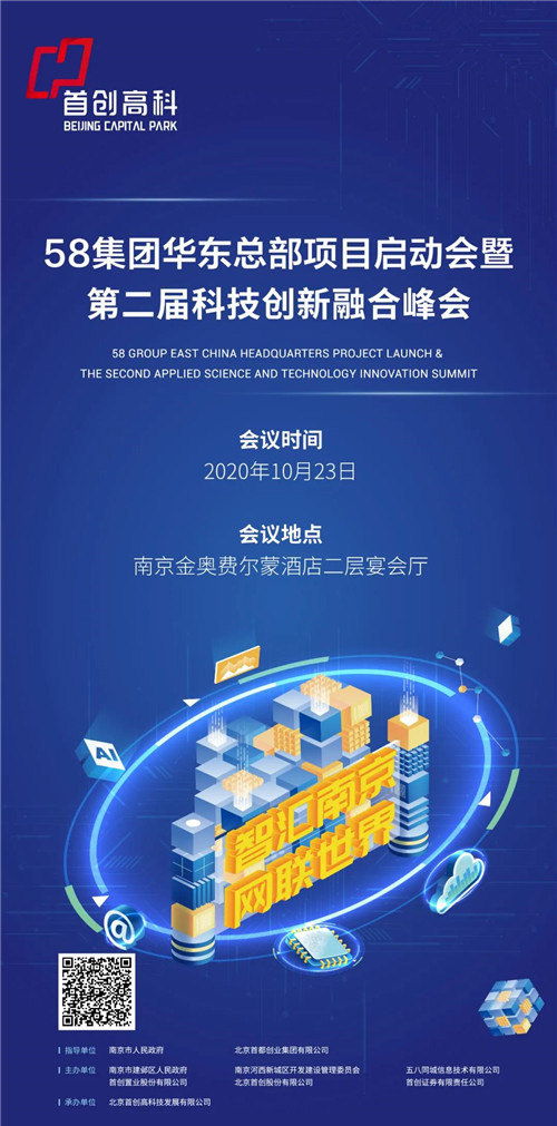 房訊網訊 2020年10月23日,58集團華東總部項目啟動會暨第二屆首創科技創新融合峰會將在南京盛大舉辦,峰會以“智匯南京 網聯世界”為主題,聚焦新一代互聯網建設、互聯網服務、網絡安全,人工智能等領域,打造開放、融合、共享的交流平臺,推動互聯網科技的創新發展、融合應用和成果共享。