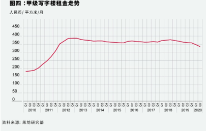 第三季度,全市甲級(jí)寫字樓平均租金為每月每平方米人民幣332.6元,環(huán)比下降0.9%,降幅與第二季度的3.5%比較呈現(xiàn)明顯收窄。