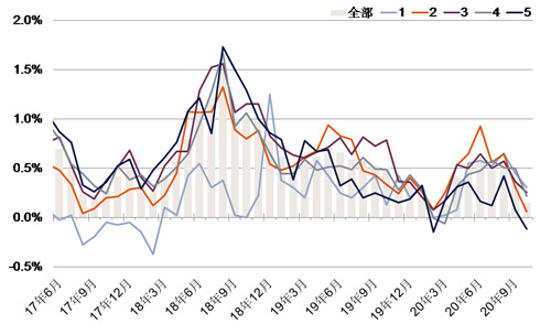 圖2:70個大中城市新建商品住宅銷售價格環比變動情況,按城市線級