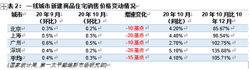 表2: 一線城市新建商品住宅銷售價格變動情況