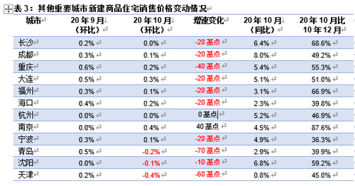 表3:其他重要城市新建商品住宅銷售價格變動情況