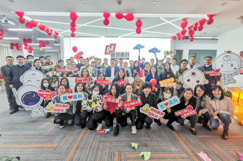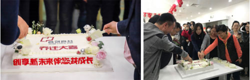 儀式上,首創高科總經理裴濬發表致辭,為新辦公區揭牌,并與所有管理層一起切蛋糕慶祝喬遷之喜。