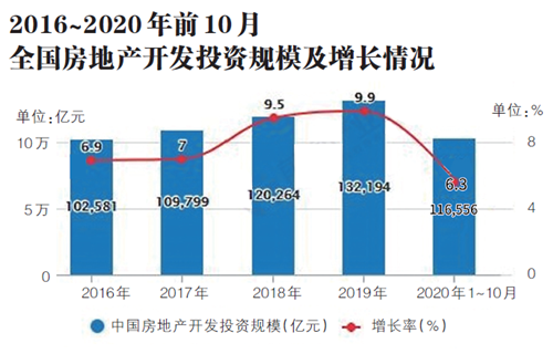 商業(yè)地產(chǎn)銷售方面,在經(jīng)歷了2015年至2017年連續(xù)3年的兩位數(shù)銷售增長(zhǎng)后,2018年商辦物業(yè)市場(chǎng)開始出現(xiàn)連續(xù)3年的大幅下滑。2018年、2019年辦公樓銷售面積分別為4363萬平方米、3723萬平方米,同比分別下滑8.3%和14.7%;商業(yè)營(yíng)業(yè)用房銷售面積分別為11971萬平方米和10173萬平方米,同比分別下滑6.8%和15%。2020年銷售下滑勢(shì)頭依然不減,前10月辦公樓和商業(yè)營(yíng)業(yè)用房銷售面積僅為2449萬平方米和6689萬平方米,同比分別下滑14.5%和14%。