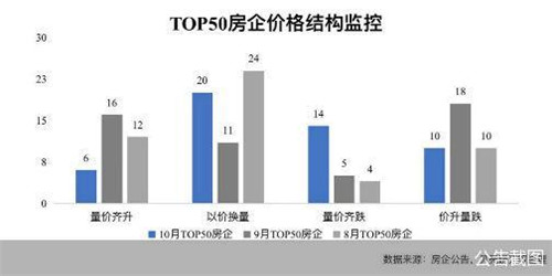 事實上,房企在“銀十”期間表現出較為明顯的促銷“誠意”,但仍有部分房企未能達到預期銷售效果。據貝殼研究院數據監測,TOP50房企中10月“以價換量”的房企為20家,較9月增加9家,同時,有14家房企銷售均價下降卻未能達到預期銷售效果,表現出“量價齊跌”的結果。