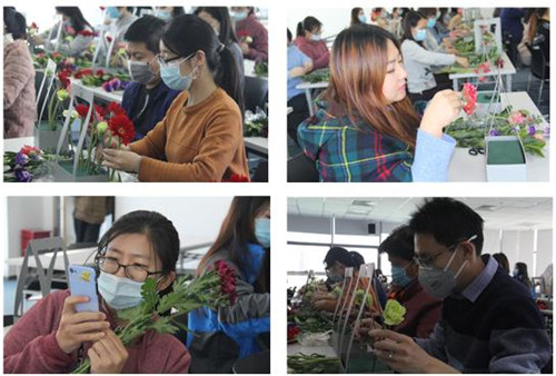 房訊網訊 2020年11月24日,前海人壽大廈花香四溢,芬芳飄滿整棟樓宇。在前海人壽大廈運營方和石景山樓宇工作站聯合組織下,40余位來自大廈企業員工匯聚在B座6層多功能廳,一起學習插花藝術,工作之余放松身心,感受鮮花與花藝帶來的美好享受。