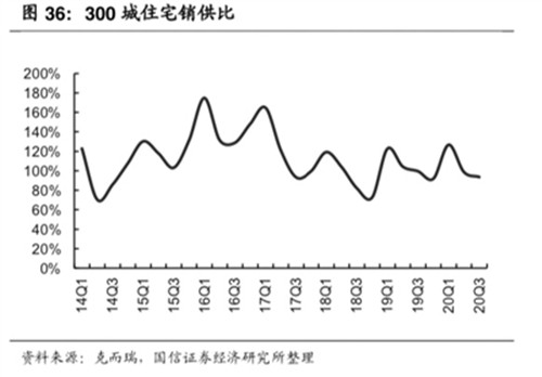 300城住宅銷供比(資料來源:克而瑞、國信證券經濟研究所整理)