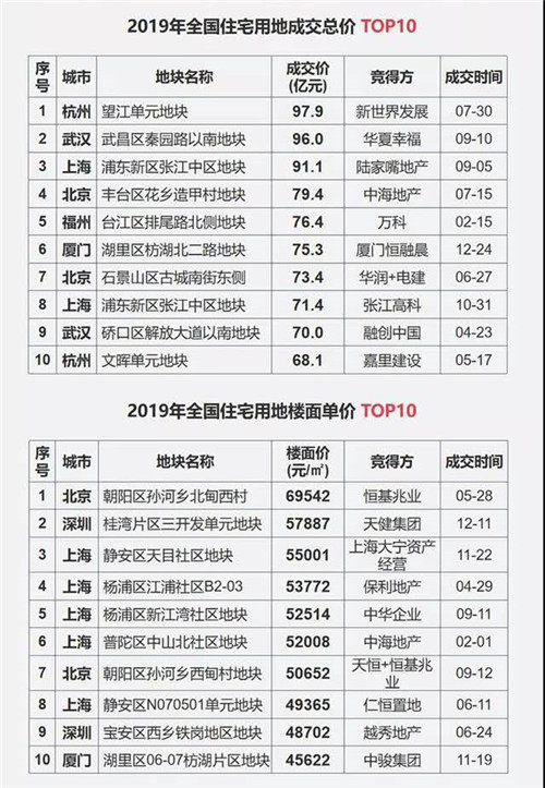 中指研究院數據顯示,2019年全國300個城市土地出讓總金額為50294億元,同比增長19%。