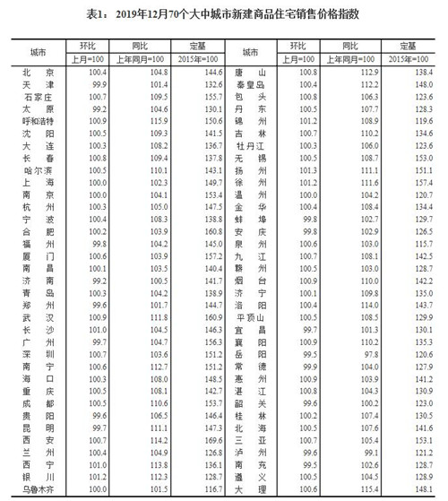 房訊網(wǎng)訊 1月16日,國家統(tǒng)計局發(fā)布了2019年12月份70個大中城市商品住宅銷售價格變動情況統(tǒng)計數(shù)據(jù)。國家統(tǒng)計局城市司首席統(tǒng)計師孔鵬進行了解讀。