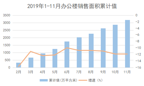 房訊網(wǎng)訊 觀點(diǎn)指數(shù)分析報(bào)告指出,2019年以來(lái),寫(xiě)字樓市場(chǎng)需求呈現(xiàn)出放緩狀態(tài)。從銷售情況來(lái)看,2019年1-11月,我國(guó)辦公樓的銷售面積呈現(xiàn)逐月上升的穩(wěn)定狀態(tài),但累計(jì)增速卻均處于負(fù)增長(zhǎng)狀態(tài),基本維持在-10%以下。