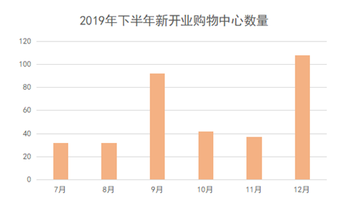 目前,購物中心面臨存量挑戰,不少開發商在購物中心上的規劃愈顯謹慎。2019年下半年以來,購物中心的開業數量相比上年有所下降。據觀點指數統計,2019年下半年以來,全國開業的購物中心數量超300家,開業時間主要集中于9月和12月,12月開業數量創下半年新高,為108家。