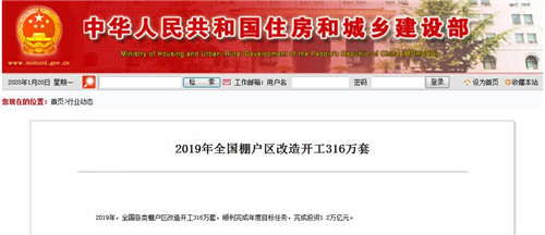 房訊網訊 據住建部官網消息,2019年,全國各類棚戶區改造開工316萬套,順利完成年度目標任務,完成投資1.2萬億元。