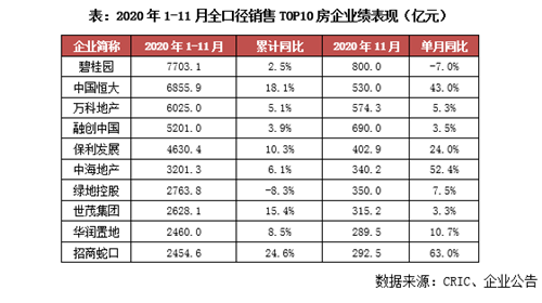 進入12月以來,房企陸續公布前11月的銷售業績。在全年業績出爐之前,前11月的業績就像“摸底”考試,各家房企在2020年表現如何,已初步有了答案。
