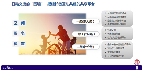 關(guān)于“創(chuàng)新養(yǎng)老社區(qū)”的營(yíng)造,首創(chuàng)置業(yè)北京公司副總經(jīng)理兼遠(yuǎn)創(chuàng)椿和養(yǎng)老服務(wù)有限公司董事長(zhǎng)周剛毅先生現(xiàn)場(chǎng)做了深入解讀,“為什么提出了共享這個(gè)概念,也就是三級(jí)共享社區(qū),說這個(gè)時(shí)候,我腦子經(jīng)常出現(xiàn)一個(gè)雞蛋,第一個(gè)層面,是蛋黃的部分,但不是老人暮氣沉沉的離開家園,而是跟家人有更好、更積極的健康環(huán)境的空間。第二個(gè)層面,是蛋清部分,高知高干高收入的人群,更多的是跟你同類的人在一起生活。第三個(gè)層面,是蛋殼,但不能只局限于產(chǎn)品的內(nèi)部的物理空間和服務(wù),通過首創(chuàng)和遠(yuǎn)洋兩大航母級(jí)集團(tuán),鏈接更多資源,讓老年人在這里進(jìn)一步的成長(zhǎng)。”