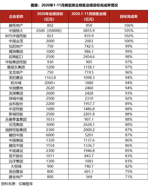 從前11月各家房企的銷售業(yè)績目標完成情況來看,典型房企仍然表現(xiàn)出嚴重分化。