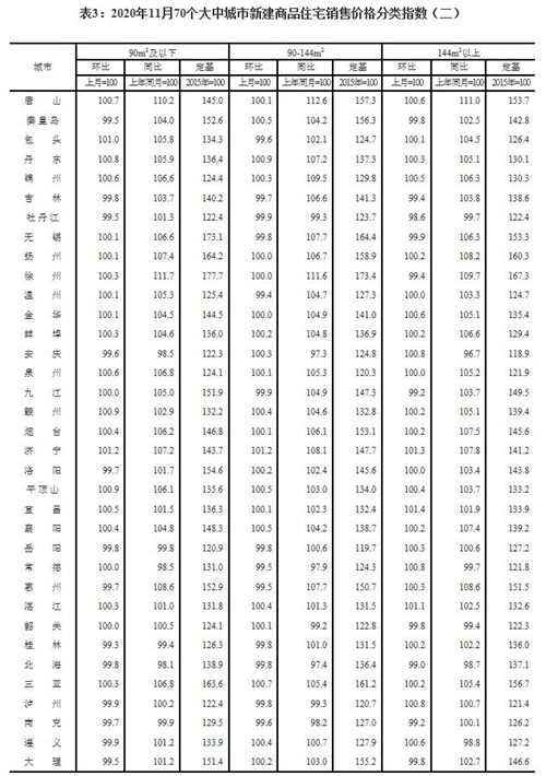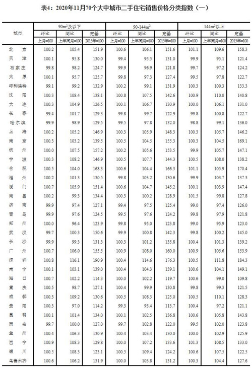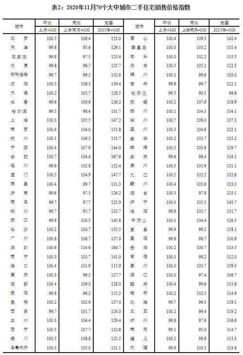 房訊網訊 12月14日,國家統計局發布2020年11月份70個大中城市商品住宅銷售價格變動情況。統計數據顯示,11月份,70個大中城市房地產市場價格漲幅總體平穩,略有回落。