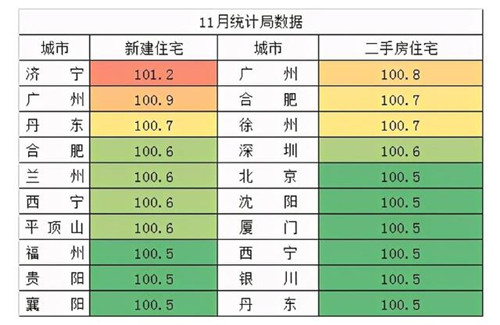 由于一手房存在限價、限簽的價格管制政策,二手房價格更真實。11月,廣州、合肥、徐州、深圳、北京二手房價環比漲幅排在前五位,其中,廣州、深圳、北京分別漲0.8%、0.6%和0.5%。張大偉認為,這些城市基本都是之前調控被明顯抑制的城市,最近在全國熱點城市包括深圳等上漲的影響下,房價復蘇企穩。