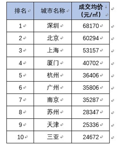 表:二手房房價最高的10個城市(來源:貝殼研究院)