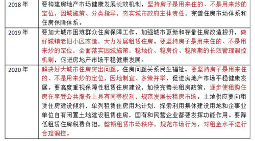 2019年指出,要堅(jiān)持房子是用來住的、不是用來炒的定位,全面落實(shí)因城施策,穩(wěn)地價(jià)、穩(wěn)房價(jià)、穩(wěn)預(yù)期的長效管理調(diào)控機(jī)制,促進(jìn)房地產(chǎn)市場平穩(wěn)健康發(fā)展。