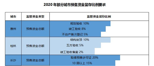在預售資金監管額度上,不少城市也實行差別化資金監管。舉例來說,長沙、惠州、長春、荊州、汕頭等城市規定根據房地產開發企業的信用狀況、綜合實力等情況,實行差別化管理。具體來說,對信用較好、綜合實力較強的房地產開發企業,降低資金監管比例,對信用較差、未正常履約的房地產開發企業按較高額度予以監管。