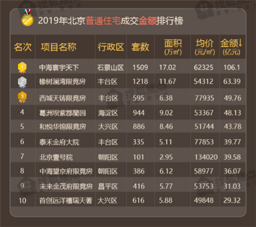 而在單盤銷售額方面,中海寰宇天下以106.1億元的銷售額傲視群雄,成為北京首個自然年內(nèi)破百億的新盤,其次是限競房橡樹瀾灣和西城天鑄。