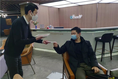 (2)運營人員防護管理:大堂、外圍執勤人員、樓層運營官等所有OFFICEZIP運營人員將增強防護管理,定時消毒并更換口罩。