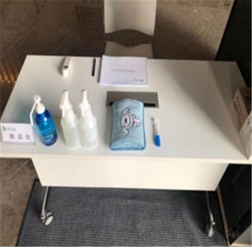 卡口測溫處配備84消毒液、75%酒精、免洗洗手液、一次性口罩等防疫物品,供來廈人員使用。每一個卡口嚴格按照流程操作,絕不漏過、錯放過任何一個隱患點。