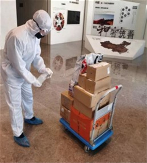 設置專門物品消殺區域,所有進入寫字樓內文件、物品,一律經過消毒后統一進行配送。