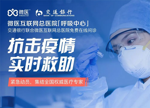 《新冠肺炎在線咨詢服務》由交通銀行為園內企業提供的免費醫療咨詢服務。該資訊平臺由交通銀行與微醫聯合打造。微醫連接了全國30個省市的2700多家重點醫院、24萬名醫生,搭建起線上線下結合、全科?迫诤系尼t療體系,幫助億萬家庭便捷獲得全時、全程的醫療健康服務。