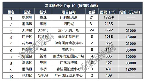 據合富統計,1月份月度成交冠軍是來自原黃埔的保利魚珠港,其中主要成交來自月初的超過1萬㎡的大手交易,也是2020年寫字樓市場第一筆大手成交,為G3棟獨棟形式辦公產品網簽,總價超過5億元。