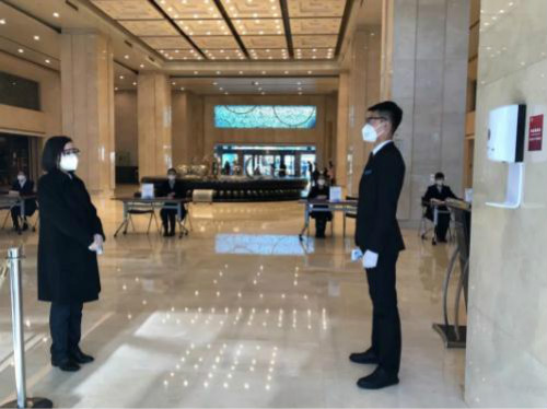 為保證大廈內客戶的健康與安全,環球貿易中心將寫字樓部分與喜來登酒店、環貿國際公寓、環貿新生活,根據自身業態實行物理分隔,分區域進行管控,減少人員聚集、流動,最大限度的保證客戶安全,保證大廈客戶穩妥有序復工。