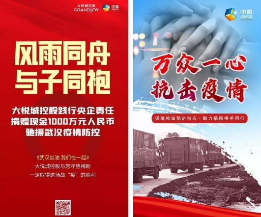 截至2020年2月11日,中糧集團(tuán)為抗擊疫情捐款累計(jì)達(dá)到7.52億元;持續(xù)加大對(duì)湖北省和武漢市米面油肉生產(chǎn)供應(yīng)力度,無(wú)償為火神山、雷神山醫(yī)院提供餐飲保障。