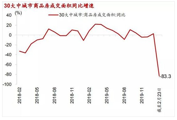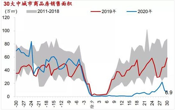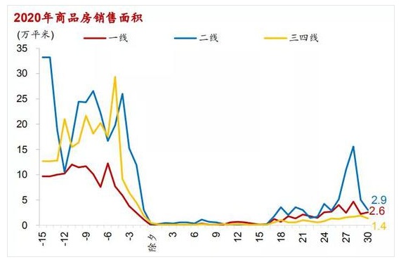 這主要是因為受疫情影響,1月26日中國房地產業協會發出倡議,號召房地產企業暫停售樓處銷售活動,疫情過后再行恢復。在此號召下,多地房地產業協會先后響應,發布公告暫停售樓處銷售活動。據不完全統計,截至1月末,已有60余個城市住建部門發布通知,要求暫停售樓處營銷活動。此外,部分地區甚至暫停房地產中介服務活動,例如門店暫停營業、不得組織現場看房等。在新冠疫情的沖擊下,這個新春的房地產銷售格外寂寥,特別是對三四線城市而言。