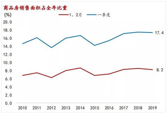 全年來看,新冠疫情對商品房銷售的影響或相對有限。新冠疫情爆發于1-2月商品房銷售的淡季,在疫情影響下,大多購房需求將會延后,因此疫情對商品房銷售的拖累主要體現在短期。一方面,1-2月商品房銷售面積在全年占比較少。從近5年數據來看,1-2月商品房銷售面積在全年占比平均為7.8%,而一季度商品房銷售面積在全年占比平均為16.3%。另一方面,若疫情過后經濟如期反彈,市場主體信心快速恢復,購房需求將在疫情過后延遲釋放。