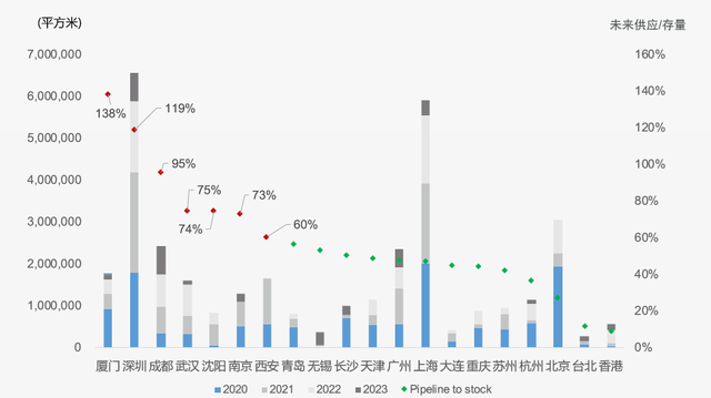 2019~2023年部分城市甲級(jí)寫(xiě)字樓供應(yīng)量數(shù)據(jù)來(lái)源:戴德梁行