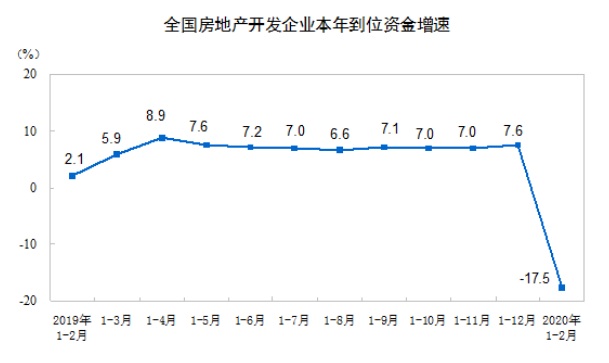 1—2月份,房地產(chǎn)開發(fā)企業(yè)到位資金20210億元,同比下降17.5%。其中,國內(nèi)貸款4547億元,下降8.6%;利用外資12億元,下降77.2%;自籌資金6161億元,下降15.4%;定金及預(yù)收款5603億元,下降23.9%;個人按揭貸款3030億元,下降12.4%。