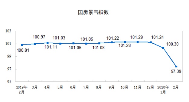 2月份,房地產(chǎn)開發(fā)景氣指數(shù)(簡稱“國房景氣指數(shù)”)為97.39。