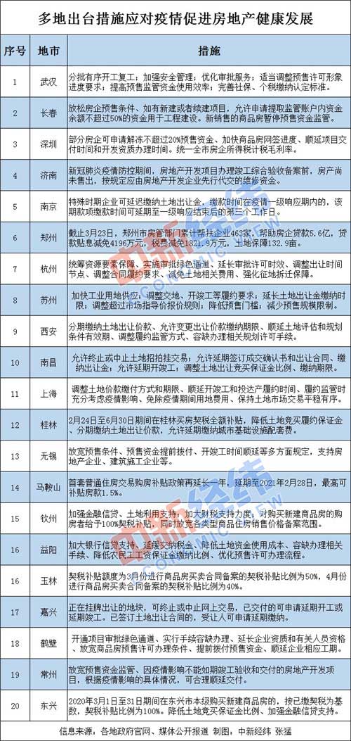 中新經緯客戶端梳理發現,已有武漢、長春、深圳、杭州、南京、鄭州、濟南、蘇州等多地出臺措施應對疫情助房企穩樓市。