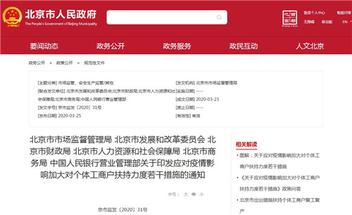 房訊網訊 3月25日,北京市市場監管局、市發改委、市財政局、市人力社保局、市商務局、人民銀行營管部等六部門聯合印發《關于應對疫情影響加大對個體工商戶扶持力度的若干措施》,多項舉措扶持個體工商戶。