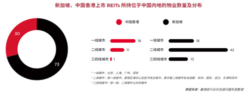 截至2019年底,新加坡和中國香港共有16支REITs持有中國內地103處商業不動產。2019年,兩地REITs在中國內地不動產交易十分活躍,共收購16處物業,處置3處物業。伴隨著內地消費升級和電商的快速發展,兩地REITs更多關注于內地零售類和工業物流類資產的收購機會。