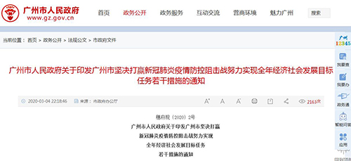 房訊網訊 5日,廣州市人民政府官方網站再次上線《關于印發廣州市堅決打贏新冠肺炎疫情防控阻擊戰努力實現全年經濟社會發展目標任務若干措施的通知》,與此前3月3號所發布的《通知》相比,具體措施內容有所調整。