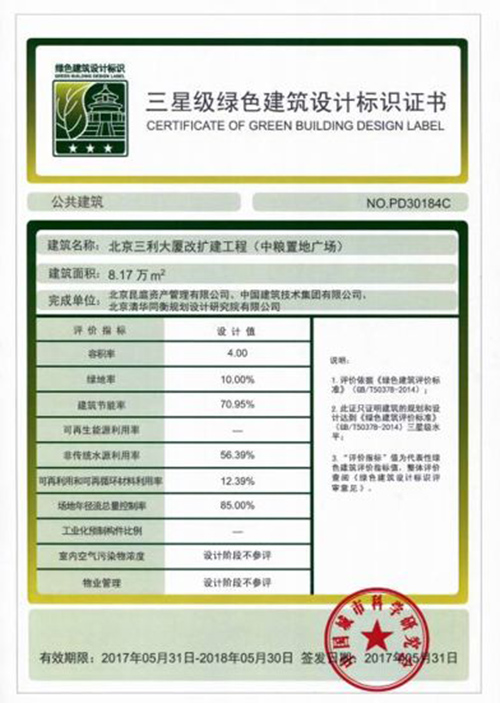 三星級綠色建筑設計認證是國內綠色建筑評估標準中的最高級別,項目秉承綠色建筑節約資源,保護環境和減少污染,為人們提供健康、舒適和高效的使用空間的原則,倡導綠色健康的生態理念,最終得了到它的認可。