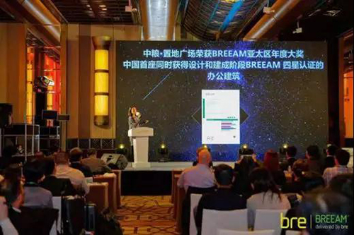 中糧·置地廣場副總經理馬佳音代表運營管理團隊通過遠程視頻的方式致獲獎辭,并對BREEAM的評審專家以及現場嘉賓表示感謝。