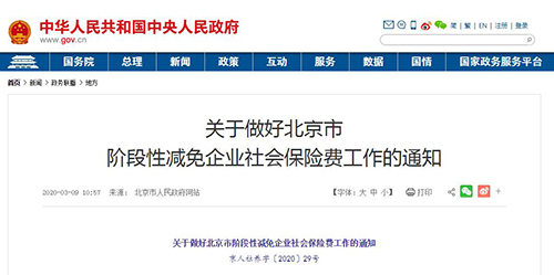 房訊網訊 3月8日,北京市人力資源和社會保障局、市財政局、市稅務局聯合發布《關于做好北京市階段性減免企業社會保險費工作的通知》,明確自今年2月起,本市階段性減免企業基本養老保險、失業保險和工傷保險單位繳費部分。