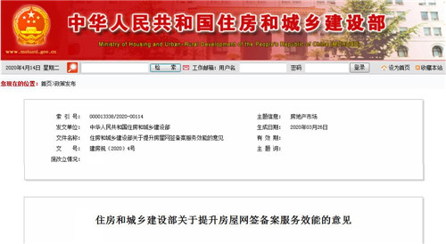 房訊網訊 日前,住房和城鄉建設部發布關于提升房屋網簽備案服務效能的意見,推進房地產領域“放管服”改革,提高房屋交易管理服務效能,向各類房地產市場主體提供規范化、標準化、便捷化的服務。