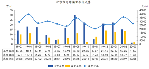 供應方面,2020年3月,北京市商品住宅(不含保障性住房)新增供應19.85萬㎡,環比上升123.7%,同比下降81.1%。