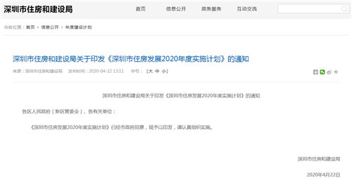 房訊網訊 4月22日,深圳市住房和建設局印發《深圳市住房發展2020年度實施計劃》,重點介紹了商品住房2020年度實施計劃、安居工程2020年度實施計劃等內容。
